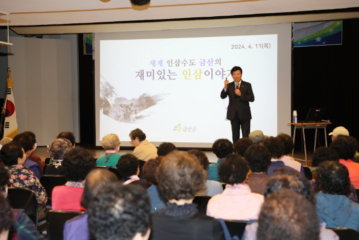 [뉴스서치] 박범인 금산군수는 지난 11일 금산다락원 소공연장에서 금산행복대학 본교생을 대상으로 세계인삼수도 금산의 재미있는 인삼이야기 특강에 나섰다.
