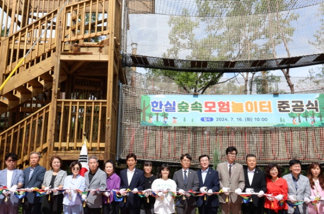 ‘한실숲속모험놀이터’는 2층 규모의 목재타워에서 출발해 돌아오는 일체형 시스템으로 총 30개 코스, 총 연장은 217m이다. 1층, 2층 각 15코스로 이루어져 있으며, 2층이 1층보다 난이도가 높게 구성돼 있어 취향과 성향에 따라 코스를 이용할 수 있는 장점이 있다. 청소년들이 코스마다 주어진 과제를 스스로 해결하고 앞으로 나아가면서 용기와 담력을 키울 수 있을 것으로 기대된다.