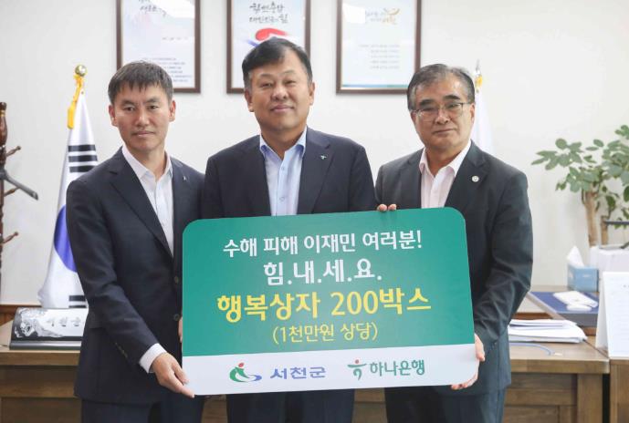 [뉴스서치] 지난 17일 하나은행 충청영업그룹은 서천군에 호우피해를 입은 이재민을 위해 써달라며 담요, 수건 등 긴급구호물품을 담은 행복상자 200개를 적십자를 통해 전달했다.