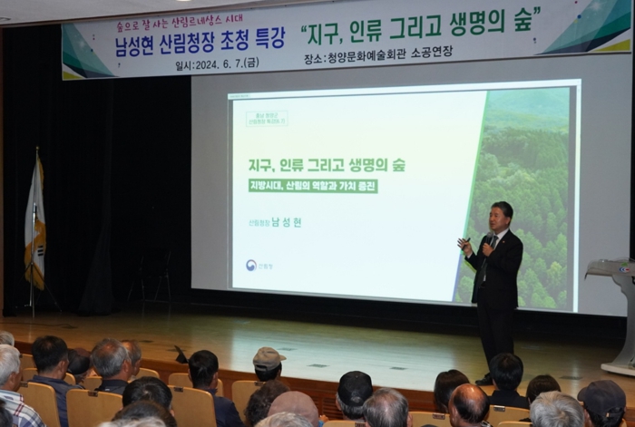 | ▲ 남성현 산림청장, 청양군 공직자와 임업인 대상 ‘지구, 인류 그리고 생명의 숲’ 특강 개최 |