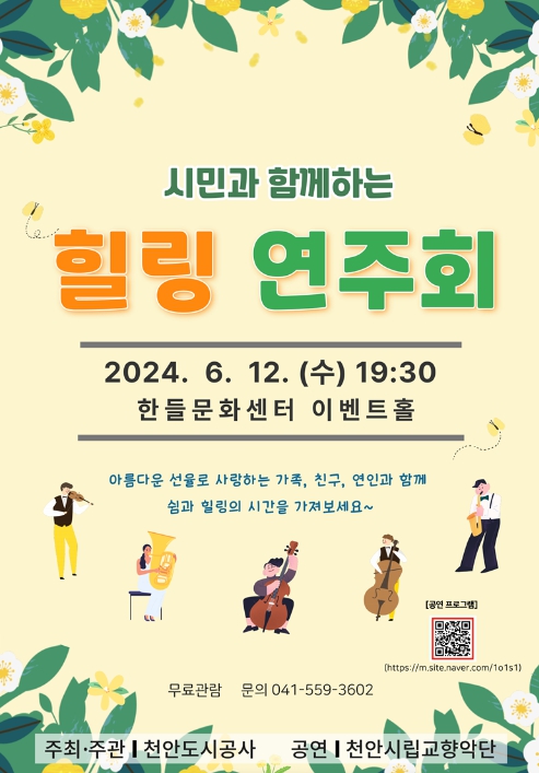 | ▲ 천안도시공사의 ‘시민과 함께하는 힐링 연주회’ 홍보문. |