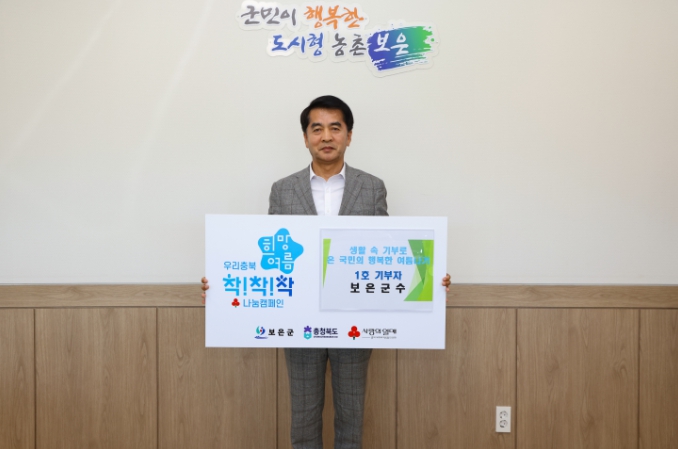[뉴스서치] 최재형 보은군수는 10일 취약계층의 에너지 지원을 위한 ‘우리 충북 희망여름 착!착!착! 나눔캠페인’에 보은군 1호로 성금을 기부했다.
