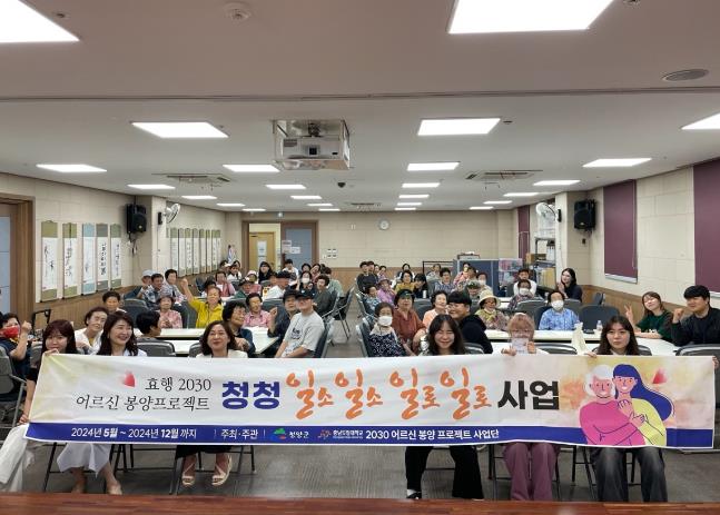 ‘효행2030 어르신 봉양 프로젝트’는 고령화 사회에서 점점 사라져가는 효행 문화를 확산하고 청년세대가 효행 활동에 참여하여 세대 간 화합을 도모하는 사업이다.