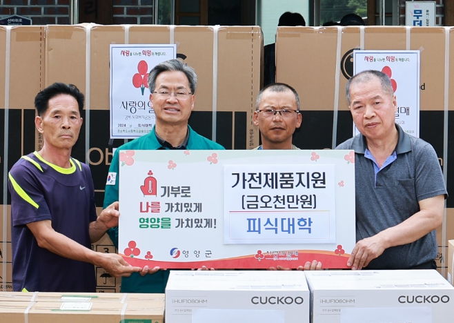 소식을 전해 들은 ‘피식대학’측은 피해 가정에서 시급하게 필요한 냉장고(23대), 세탁기(5대), 선풍기(25대), 밥솥(25대), 텔레비전(3대) 등 필수가전을 기부하며 하룻밤에 삶의 터전을 잃어 낙담하고 있을 영양군민들에게 온정을 전했다.