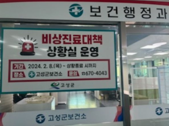 보건복지부가 지난 2월 6일 보건의료재난 위기 ‘경계’ 경보를 발령했고, 2월 23일에는 보건의료 재난 ‘심각’ 단계로 격상됨에 따라 고성군은 의료계 집단행동에 대비하는 비상진료대책상황실을 구성하여, 집단행동 종료 시까지 군민이 안심하고 의료서비스를 받을 수 있도록 노력하고 있다.