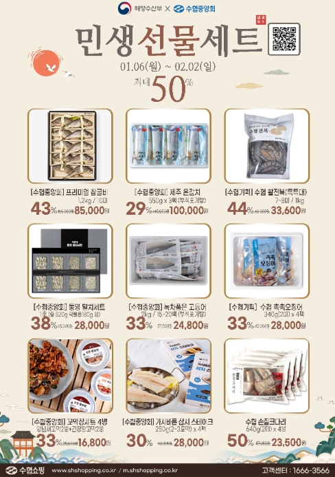 또한, 설 성수품을 다채롭게 구성하여 저렴하게 구입할 수 있는 ‘설 민생 선물세트’도 마련했다. 수협 온·오프라인 매장 및 모바일 플랫폼(카카오톡 선물하기)에서 구매 가능하며, 정상가의 최대 절반 수준까지 할인하여 판매할 예정이다.