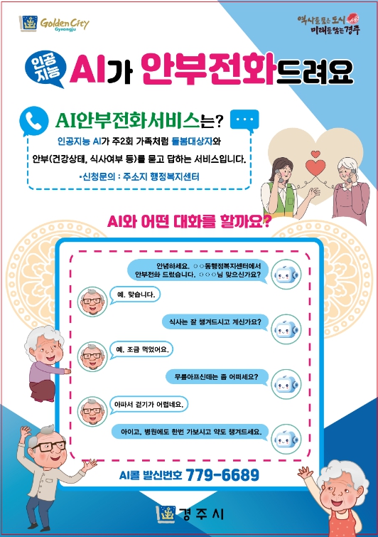 [뉴스서치] 경주시가 사람과 대화 가능한 인공지능(AI) 전화 서비스로 복지 사각지대 위기 가구 발굴에 앞장선다고 16일 밝혔다.