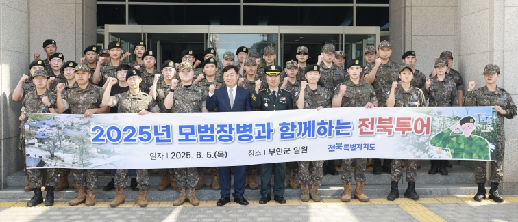 [뉴스서치] 전북특별자치도는 5일, 도내 군부대에 복무 중인 타지역 출신 모범장병 40명을 대상으로 ‘2025년 상반기 모범장병과 함께하는 전북 투어’를 진행했다고 밝혔다.