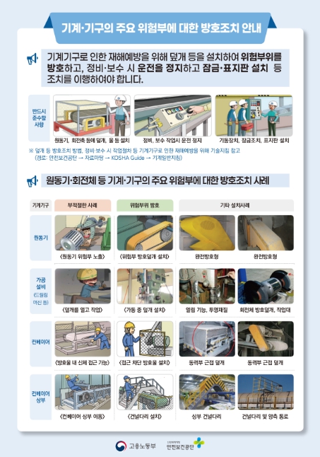 ▲ 기계·기구의 주요 위험부에 대한 방호조치 안내문 |