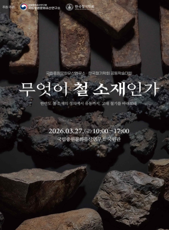 [뉴스서치] 국가유산청 국립문화유산연구원 국립중원문화유산연구소는 한국철기학회와 함께 2026년 3월 27일 오전 10시 국립중원문화유산연구소 국원관에서『무엇이 철 소재인가?』를 주제로 공동 학술대회를 개최한다.