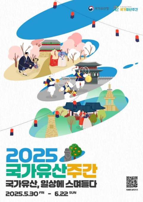 [뉴스서치] 국가유산청은 (사)한국문화유산활용단체연합회와 오는 5월 30일부터 6월 22일까지 전국 400여 곳의 국가유산 현장에서 답사, 교육, 공연, 전시 등을 즐길 수 있는 '2025년 국가유산주간'을 개최한다.