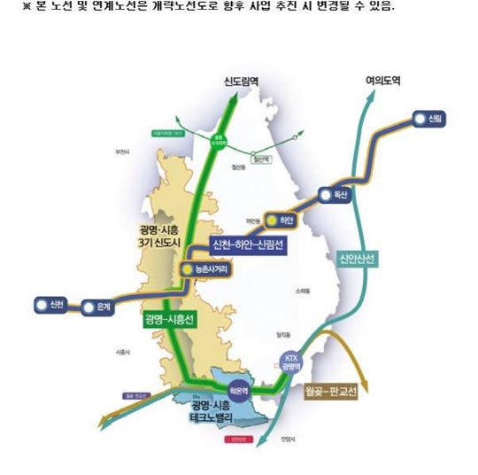 신천~하안~신림선은 신천(시흥)~하안(광명)~독산(금천)~신림(관악)을 연결하는 노선으로, 광명시를 비롯한 수도권 서부지역 주민의 서울 접근성 향상과 3기 신도시 가운데 최대 규모로 조성될 광명‧시흥 3기 신도시의 광역교통망 확충을 위해 반드시 필요한 노선이다.