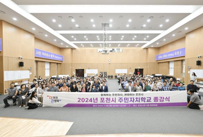 [뉴스서치] 포천시는 지난 26일 포천시청 2층 대회의실에서 200여 명의 주민자치 위원들이 참석한 가운데 2024년 포천시 주민자치학교 종강식을 개최했다.
