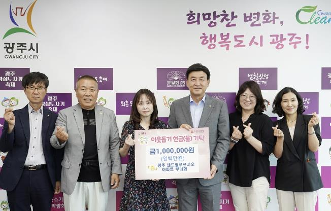 또한, 같은 날 광주센트럴푸르지오아파트 부녀회에서도 광주시에 성금 100만원을 전달했다.