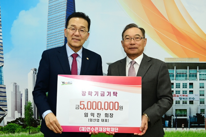 [뉴스서치] 인천 연수구에서 설립한 (재)연수큰재장학재단에 ㈜임산업 임익찬 대표가 지역 꿈나무들을 위한 장학금 5백만 원을 쾌척했다.