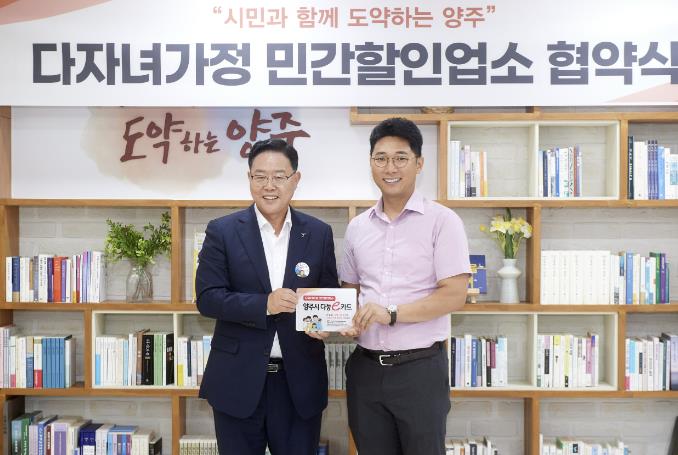 한편, 다자녀 가정 지원사업을 통한 출산장려 사회적분위기 조성을 위해 출시한 양주시 다둥e카드 모바일 앱의 가입자 수가 6,543명을 넘어서며 시민들의 호평을 받는 가운데 다자녀 가정 지원에 자발적으로 동참한 관내 병의원, 학원, 음식점 등 총 75개소 업체가 민간할인업소로 협약을 체결했다.