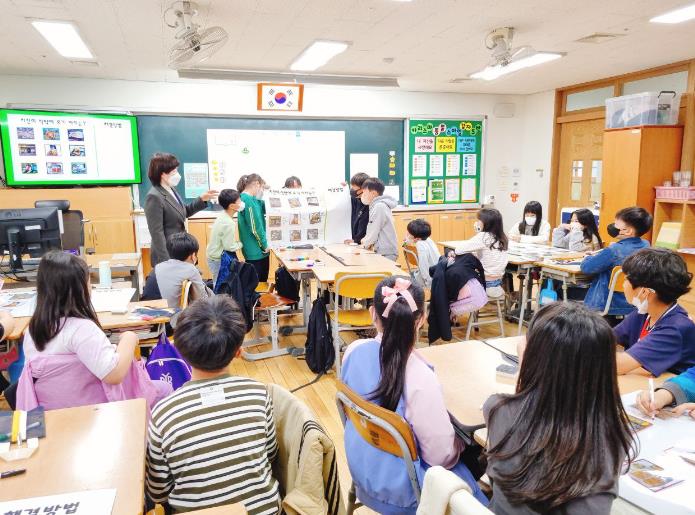 ‘찾아가는 어린이 환경교실’은 북구 소재 39개 초등학교 4학년을 대상으로 하는 맞춤형 환경교육으로, 환경문제 및 기후위기에 대해 공감대를 형성하고 어린이들의 자발적 실천 문화를 조성하기 위해 마련하였다.