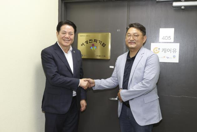 ▲ 안양시, 주식회사 캐어유 ‘안양형 여성친화기업’ 현판식 개최 |