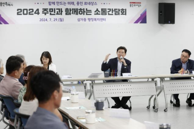 주득재 통장협의회장은 ”지난 21년 분동 후 3년이 지났는데 청사와 주민자치센터가 아직 건립되지 않아서 어려움이 있는데, 지금 사용하고 있는 삼가동 행정복지센터가 입주한 용인 미르스타디움 내 유휴공간 일부를 주민자치센터로 활용할 수 있도록 해달라“고 요청했다.