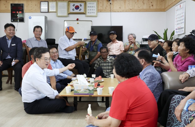 [뉴스서치] 김동연 지사가 탑승한 ‘달달버스’가 TOK 평택 포승공장 착공식을 마치고 달려간 곳은 포승읍 내기1리 무더위 쉼터. 1층 거실에 어르신 30여 명이 김동연 지사를 맞이했다.