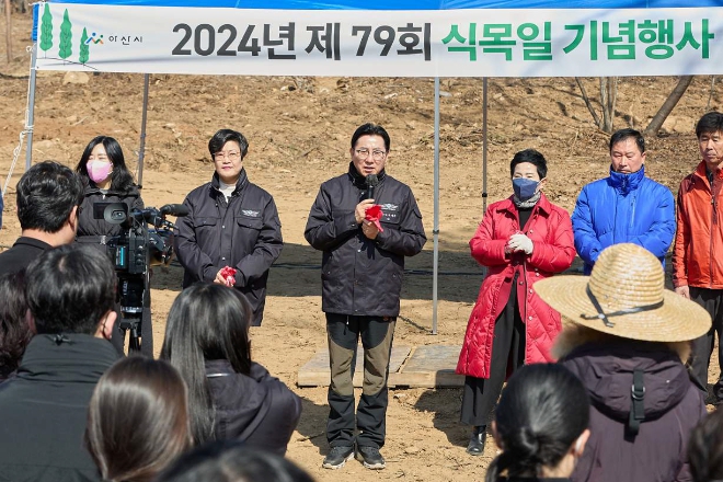 박경귀 시장은 행사 시작에 앞서 “기후변화로 인한 피해가 속출하고 있는 이때, 산림의 중요성은 나날이 높아지고 있다”면서 “오늘 우리가 심은 나무들은 훗날 우리의 자식, 손주들이 살아갈 미래에 큰 선물이 될 것”이라고 말했다.