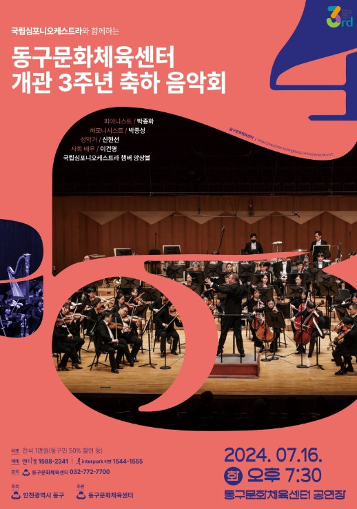 [뉴스서치] 인천 동구문화체육센터는 개관 3주년을 맞아 오는 16일 오후 7시30분 '동구문화체육센터 개관 3주년 축하음악회'를 개최한다고 밝혔다.
