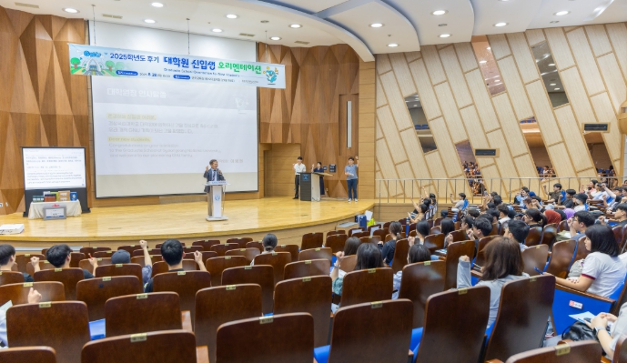 ▲ 경상국립대학교(GNU) 대학원은 8월 28일 언어교육실 파이어니어 오디토리엄에서 ‘2025학년도 후기 대학원 신입생 오리엔테이션’을 개최했다. |