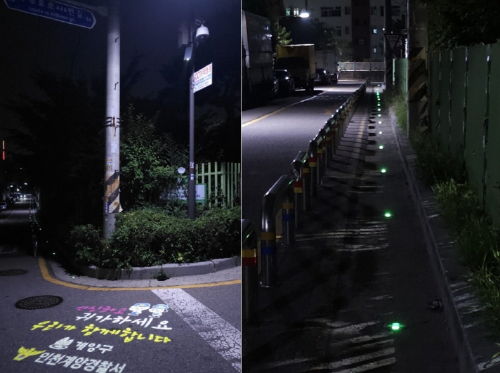 [뉴스서치] 인천광역시 계양구는 여성친화도시 활성화와 안전한 도시환경 조성을 위해 최근 작전1동 학교 주변 일대에 바닥조명, 로고젝터, CCTV 등을 설치하는 안심귀갓길을 추가로 조성했다고 밝혔다.