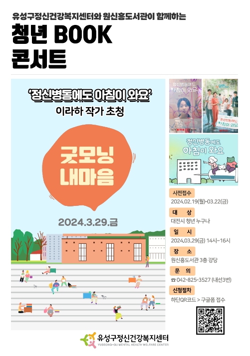 [뉴스서치] 대전 유성구는 오는 29일 유성구 원신흥동 도서관에서 청년마음건강사업‘청년BOOK콘서트’를 진행한다.