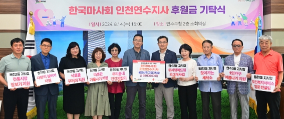 이재호 연수구청장은 “꾸준한 기부를 해주신 한국마사회 인천연수지사에 감사의 마음을 전한다.”라며 “앞으로도 연수구의 복지안전망 강화를 위해 다양한 사업을 추진해 적극 지원하도록 노력하겠다.”라고 말했다.