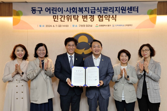 [뉴스서치] 인천 동구는 지난 7일 인하대학교 산학협력단과 ‘어린이·사회복지급식관리지원센터 민간위탁 변경 협약’을 체결했다고 밝혔다.