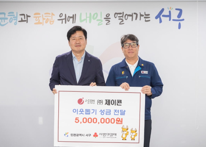 [뉴스서치] 인천 서구는 7월 29일, 제이콘으로부터 이웃돕기 성금 500만원을 전달받았다.