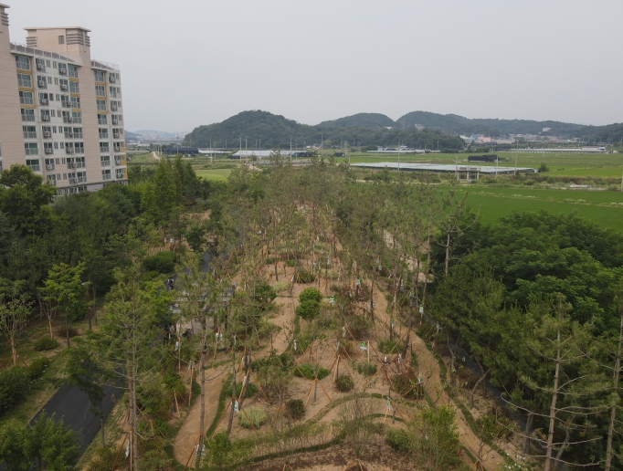 구는 14억 원의 사업비를 들여 미세먼지 저감 수종인 해송, 메타세콰이어 등의 교목과 관목류를 심어 숲을 조성했다.