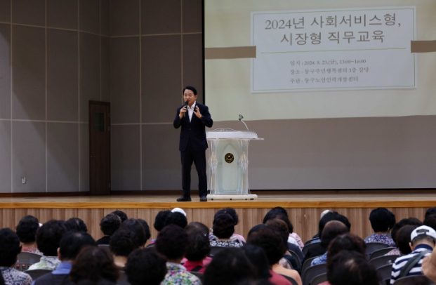 [뉴스서치] 인천 동구는 지난 23일 동구 주민행복센터에서 노인일자리 사회서비스형·시장형 사업 참여자 약 500여명을 대상으로 직무교육을 실시했다고 밝혔다.