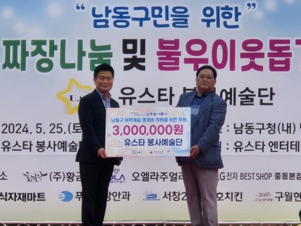 [뉴스서치] 인천시 남동구는 유스타봉사예술단으로부터 이웃돕기 후원금 300만 원을 기탁받았다고 29일 전했다.