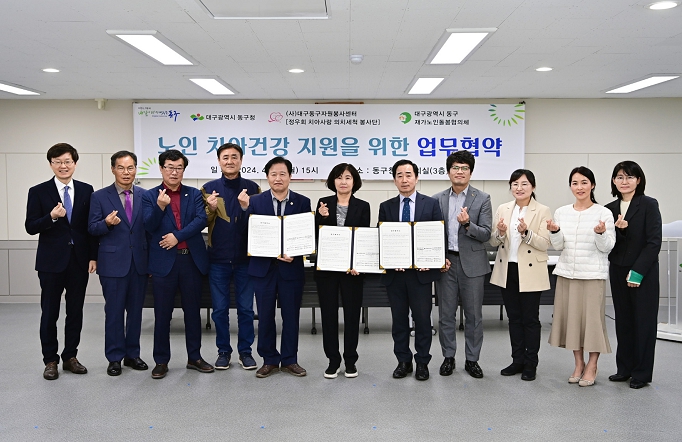 [뉴스서치] 대구 동구청은 22일, (사)동구 자원봉사센터, 동구 재가노인돌봄협의체와 업무협약을 맺고, 노인 치아건강 지원을 위해 협력하기로 했다.