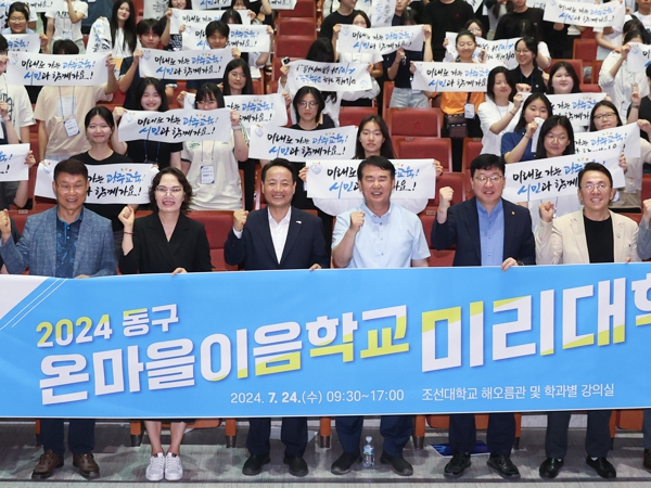 [뉴스서치] 광주 동구는 지난 24일 조선대학교 해오름관에서 관내 고등학생 150명이 모인 가운데 광주광역시교육청·광주시민협치진흥원·조선대와 함께 대학 체험 기회를 제공하는 ‘2024 동구 온마을이음학교 미리대학’을 운영했다고 밝혔다.