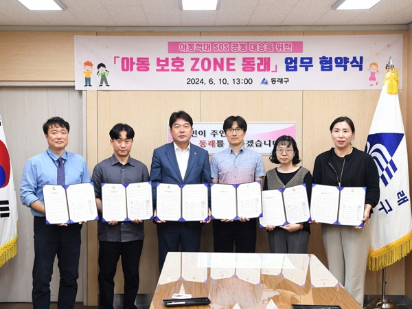 장준용 동래구청장은 “이번 협약에 참여해 주신 기관들에 감사드리며, 앞으로 함께 힘을 모아 아동들이 밝고 건강하게 자랄 수 있는 터전을 만들고, 아동학대 없는 교육하기 좋고 아이 키우기 좋은 동래가 되기 위해 계속 힘쓸 것이다”고 전했다.