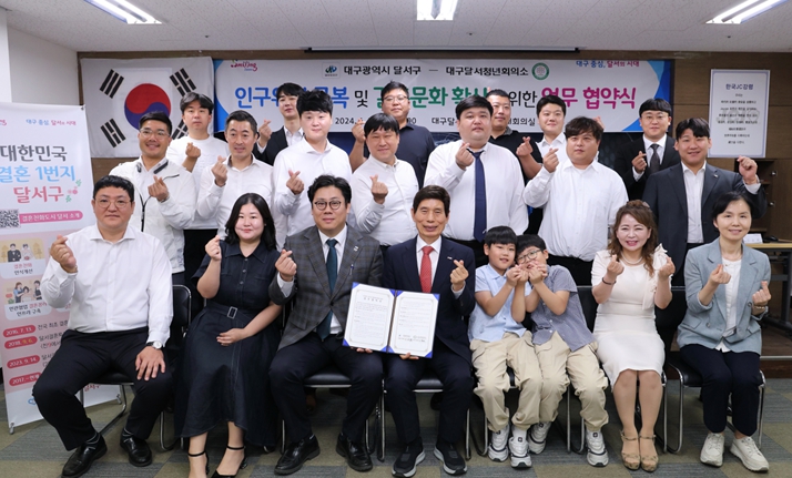 [뉴스서치] 대구 달서구가 27일 대구달서청년회의소 대강당에서 대구달서청년회의소와 인구위기 극복을 위해 공동 대응하고자, 청년을 응원하고 결혼친화 문화 확산 등을 위한 업무 협약을 체결했다.