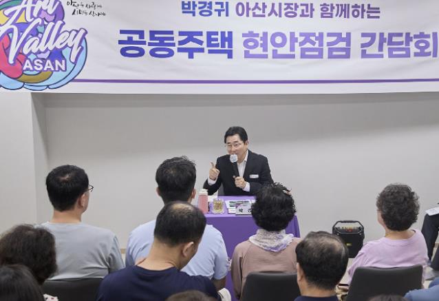 박경귀 아산시장은 매달 1~2회 공동주택을 직접 방문해 하자처리를 중심으로 입주민의 불편을 해소하고, 주민 눈높이에 맞는 민원해결 방안과 합리적 대안 마련을 위한 ‘찾아가는 공동주택 현장간담회’를 실시하고 있다.