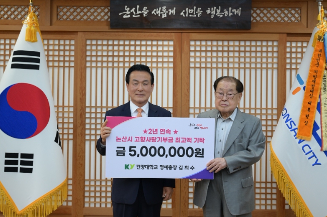 | ▲ 논산 고향사랑 1호’ 김희수 총장, 2년 연속 최고액 500만 원 기부 |