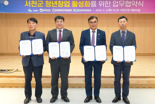 협약을 체결한 4개 기관은 서천군 지역경제 활성화를 위한 지역자원을 발굴해 비즈니스 모델을 개발하고, 지역 맞춤형 창업 지원을 골자로 하는 업무협약을 맺었다.