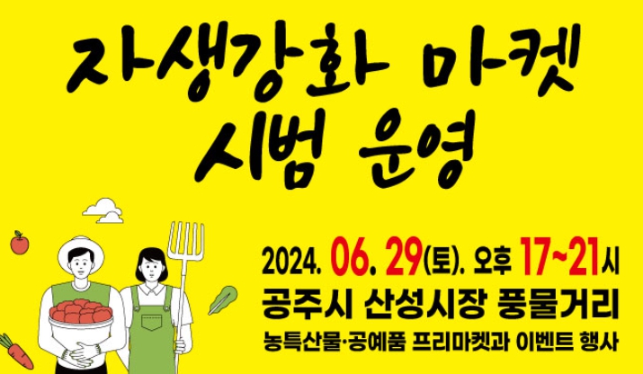 [뉴스서치] 공주시는 오는 29일 산성시장 풍물거리에서 지역 소농인과 소상공인이 참여하는 프리마켓인 ‘자생강화마켓’을 시범 운영한다고 밝혔다.