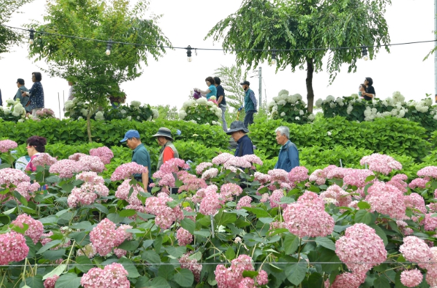 특히, 청정 하천인 유구천을 따라 조성된 총 4만 3000㎡의 수변공간에 에나멜수국, 목수국, 앤드리스썸머, 핑크아나벨 등 22종, 1만 6000본에 달하는 수국이 매년 6월이면 장관을 이루고 있다.