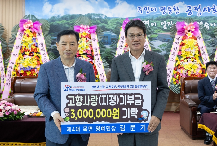 [뉴스서치] 청양군은 지난 11일 이임한 제4대 김문기 목면 명예면장이 고향사랑e음을 통해 3백만원을 지정 기부했다고 밝혔다. 또한 답례품으로 제공받은 청양사랑 상품권 90만원 전액도 목면의 어려운 이웃을 위해 사용해달라며 전액 재기부했다고 전했다.