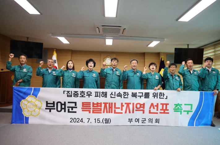 이어, 군의회는 성명서를 통해 정부에 ▲부여군 지역이 조속히 복구될 수 있도록 “특별재난지역”으로지정·선포 ▲부여군민이 일상으로 하루빨리 복귀할 수 있도록 현실적인 피해보상 대책 마련 ▲정부는 지방자치단체와 연계하여 제방붕괴 등 재난위험 요인들을 철저히 분석하여 실효성 있는 항구적인 재난방재대책을 수립할 것을 강력히 촉구했다.