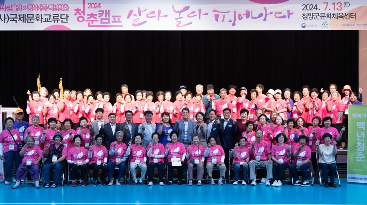 [뉴스서치] (사)국제문화교류단 청양군지부는 지난 13일 청양군 문화체육센터에서 지역사회서비스 투자사업 서비스 이용자 및 그 가족, 관계자 등 100여 명이 참석한 가운데 2024 행복가득 청춘캠프 (살다·놀다·피어나다)를 성황리에 개최했다.