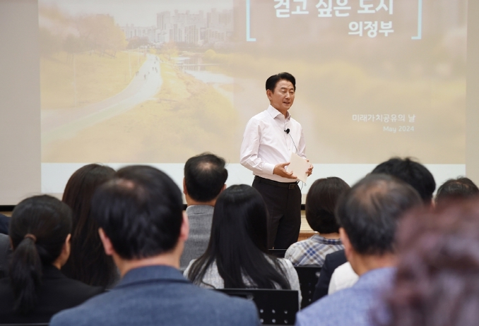 ▲ 걷고 싶은 도시 의정부를 주제로 미래가치 공유의 날 발표하는 김동근 시장 |