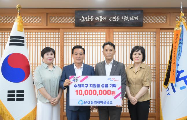 [뉴스서치] 놀뫼새마을금고가 지난 29일 논산시청을 방문해 수재의연금 1천만원을 기탁했다.
