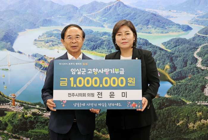 [뉴스서치] 전주시의회 전윤미 의원이 지난 7일 임실군에 고향사랑기부금 100만원을 기부했다.